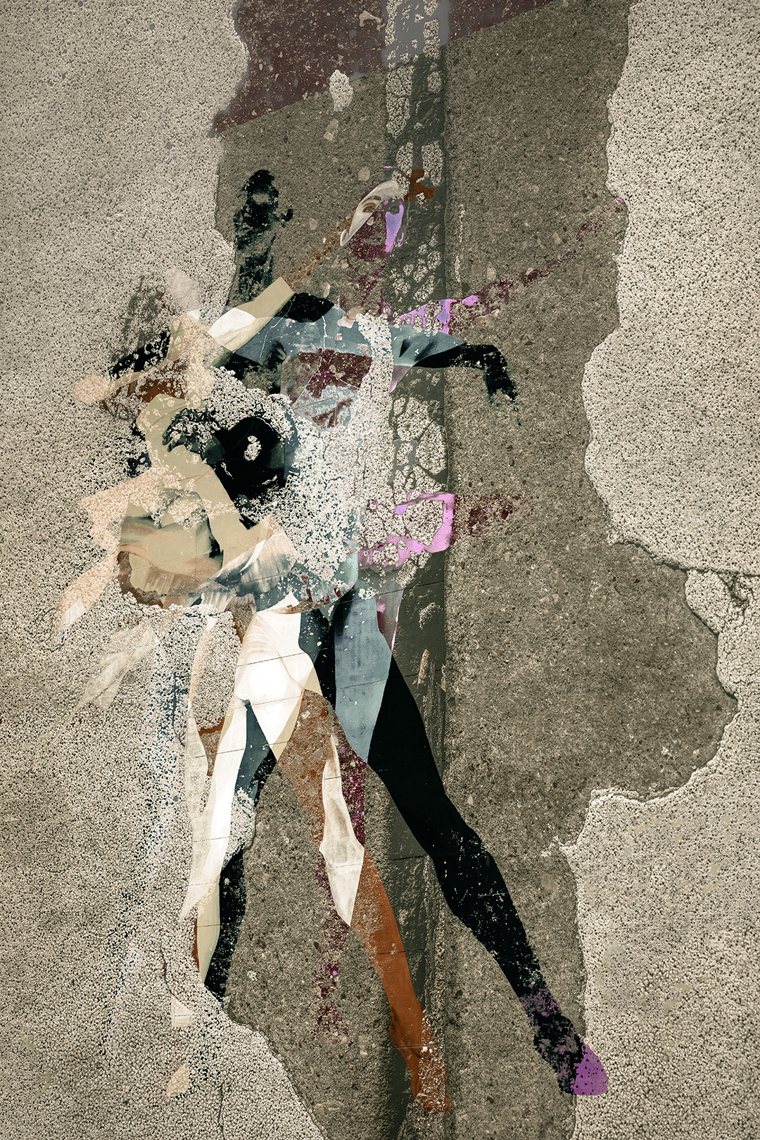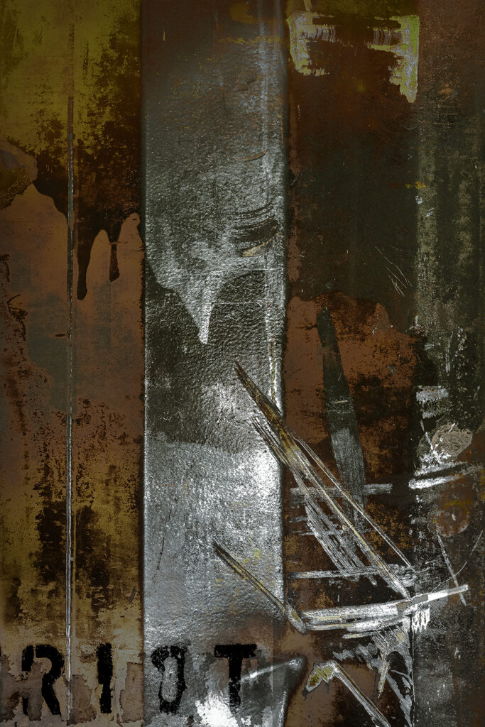 Optimism is not a declaration here, but a tension embedded in the image, tension between disintegration and the energy of persistence. Beneath the weight of matter emerge color, rhythm, and movement — signs of life that has not been annulled.